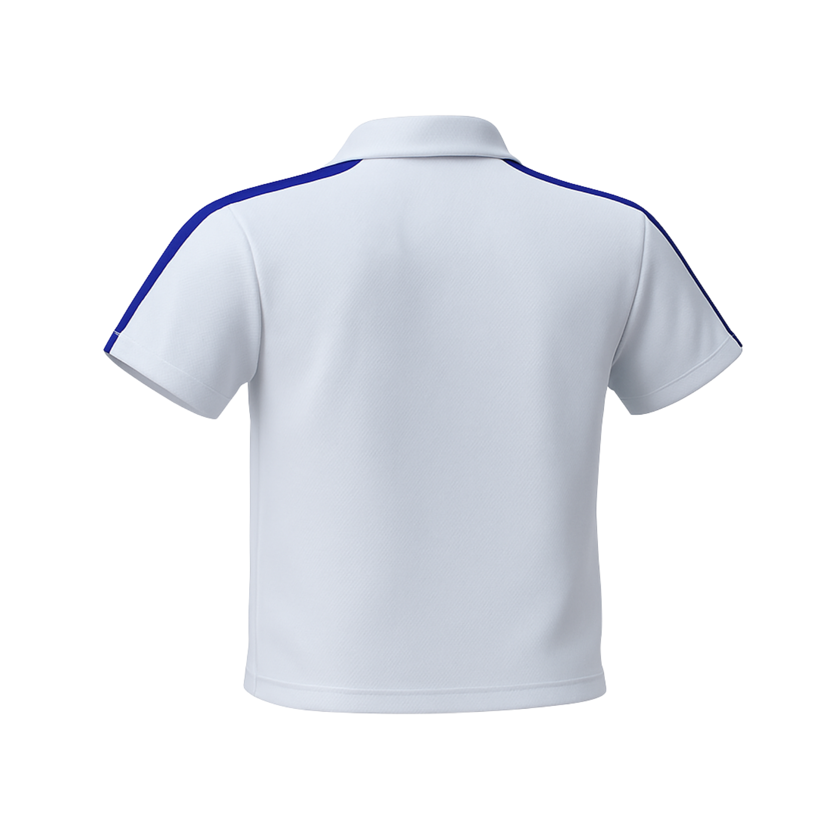 White polo t-shirt accented with colorful diagonal stripes, perfect for inter-house competitions and PE classes.