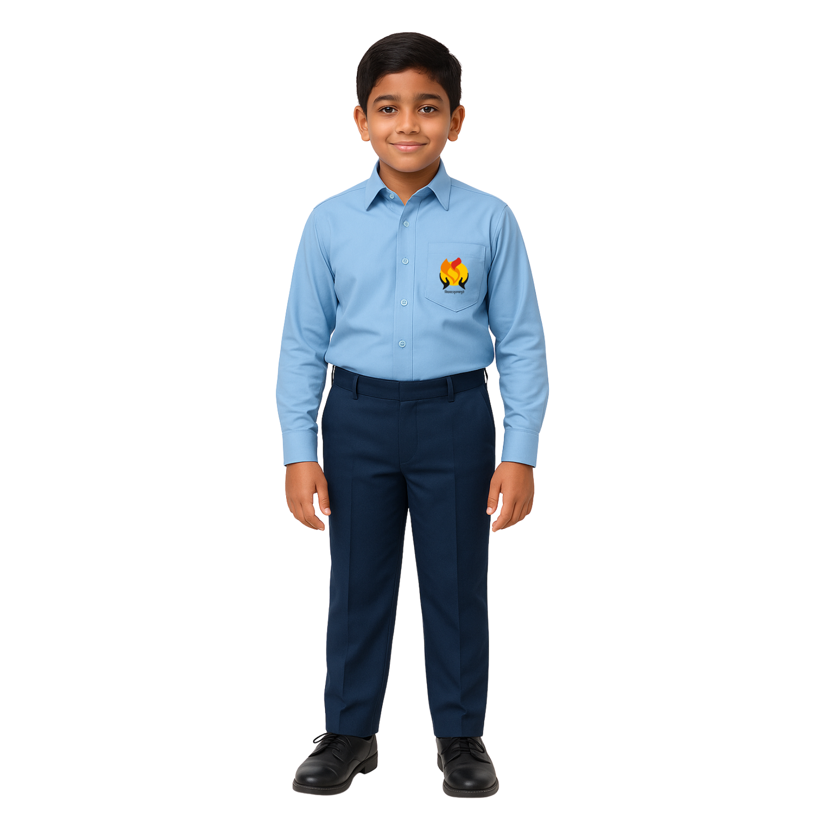 Navy blue flat-front pants made of comfortable, durable fabric; part of the regular Birla Vidya Niketan school uniform for both boys and girls. Neatly tailored for a smart, formal look.