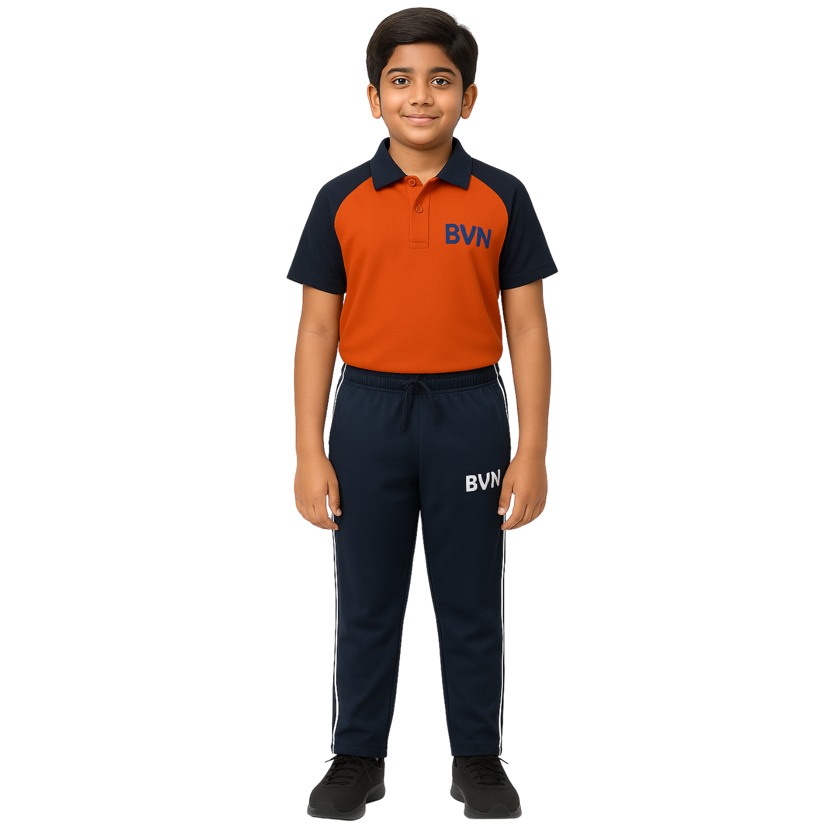 An orange sports T-shirt worn by Birla Vidya Niketan students during PE and sports activities, made from breathable fabric for comfort and ease of movement.