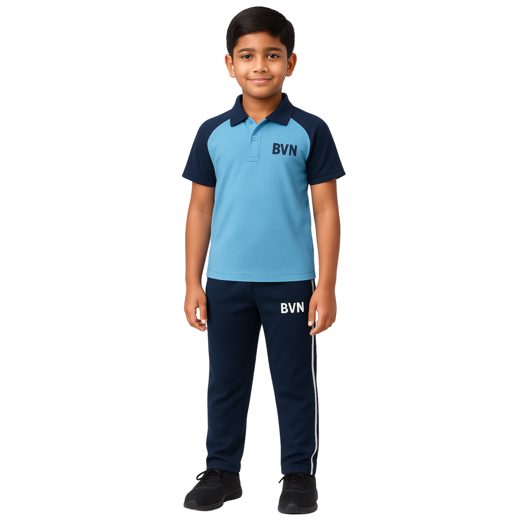 A blue sports T-shirt worn by Birla Vidya Niketan students during PE and sports activities, made from breathable fabric to ensure comfort and flexibility during physical exercises.