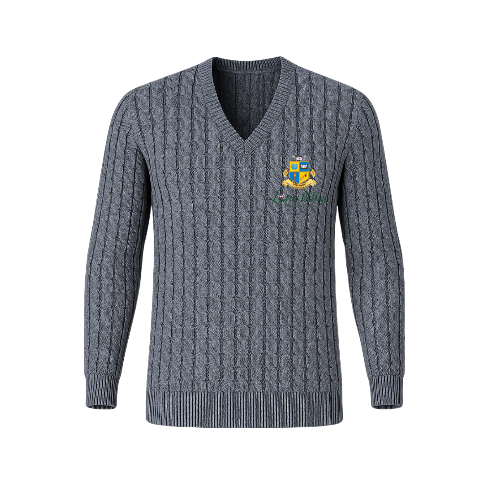 The Lotus Valley International School Winter Sweater is a full-sleeved, V-neck knitwear crafted to provide warmth and comfort during the cold season. Made from a durable wool blend, it features a ribbed pattern that offers both insulation and a smart uniform look. The embroidered school crest on the chest highlights school pride and identity, while the snug ribbed cuffs and hem ensure a neat fit. Perfect for pairing with school shirts, this sweater combines style, functionality, and long-lasting comfort—making it an essential winter uniform article.