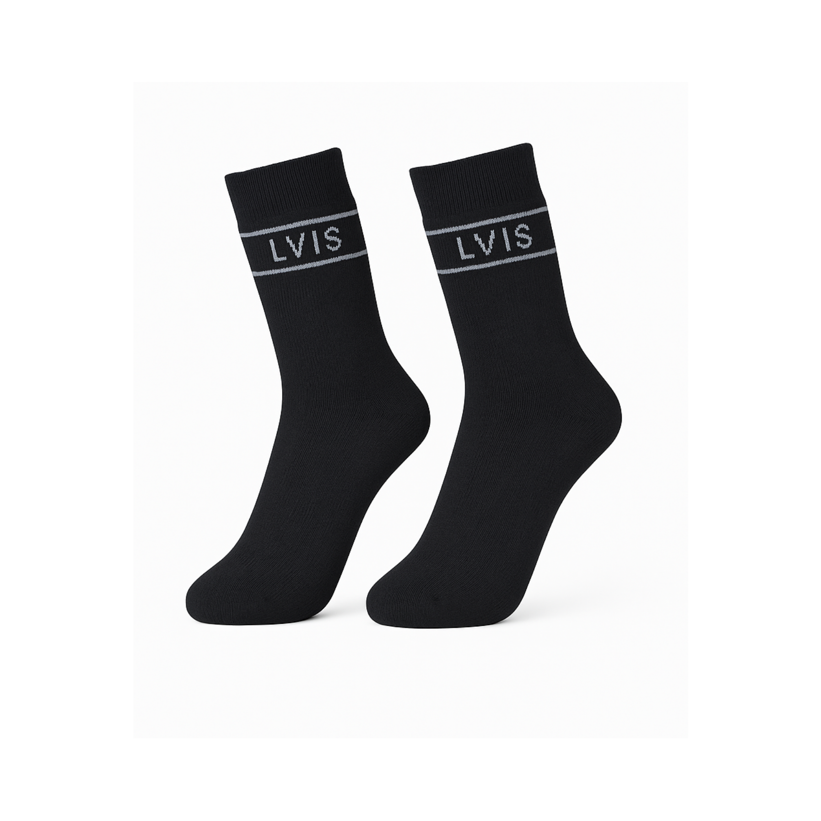 Black socks with 'LVIS' branding at the cuff – soft and durable for everyday school use.