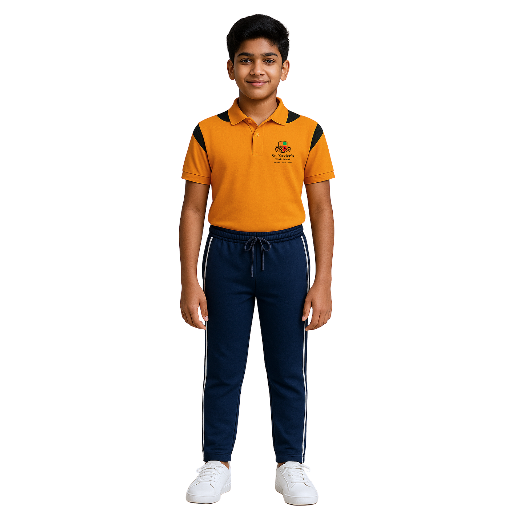 Comfortable dark-colored track pants made from warm, stretchable fabric, designed for winter sports and physical education activities. These uniform track pants provide ease of movement while maintaining the school’s dress code.