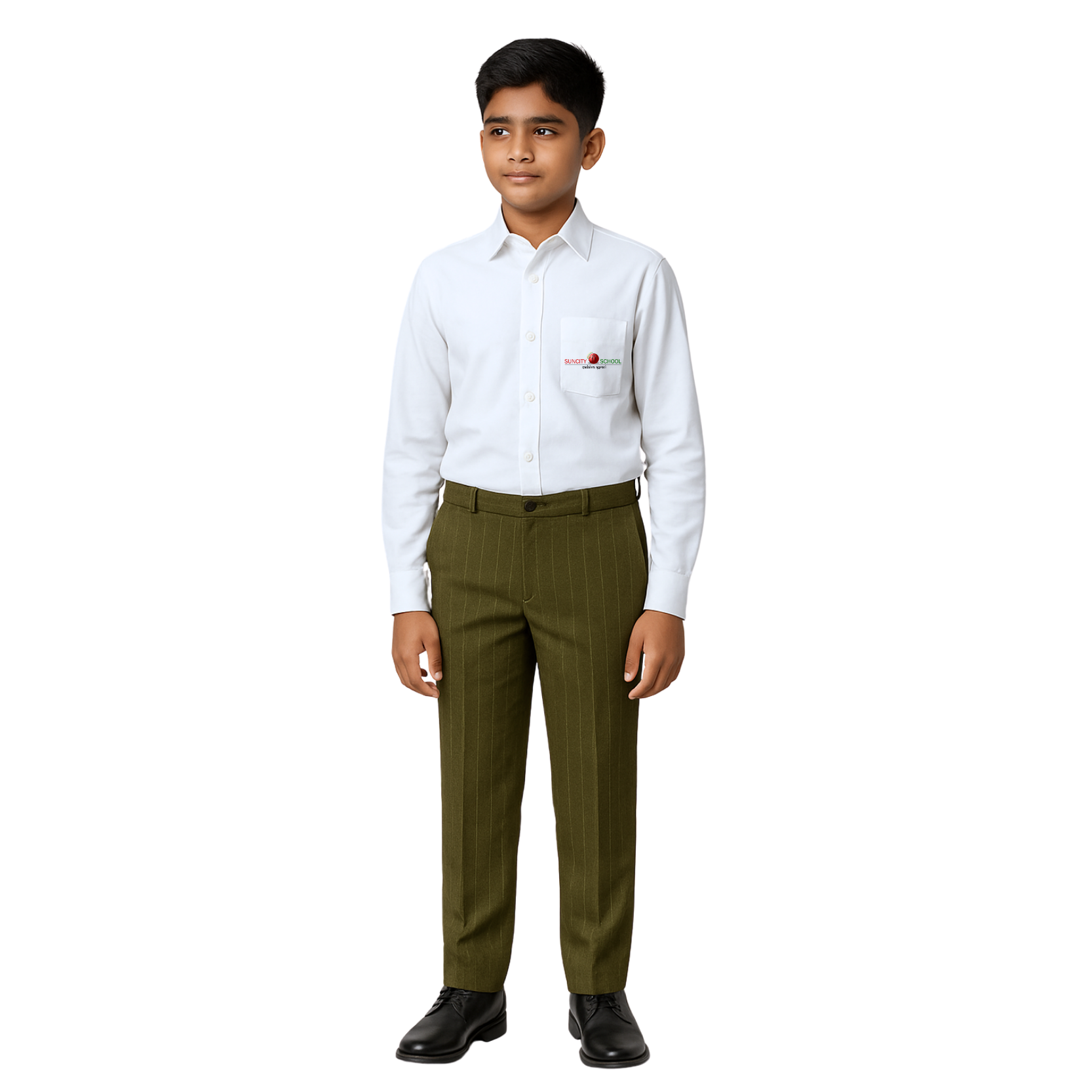 Classic white full-sleeve shirt with the embroidered school logo, a staple for formal school days.